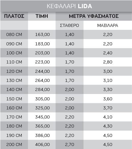 Πλάτος: 80 90 100 110 120 130 140 150 160 170 180 190 200 cm